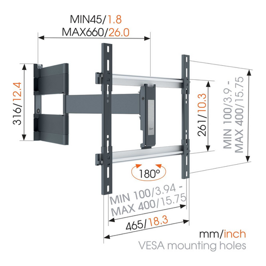 Vogels MA 2040 Full motion stenski TV nosilec 19" do 43", 180°+15°, 15kg