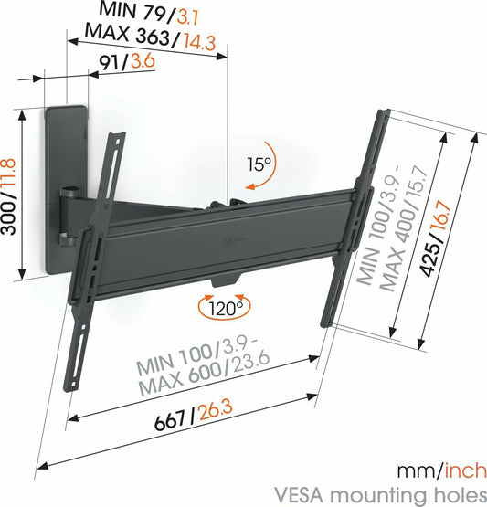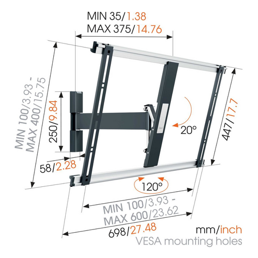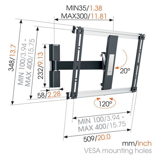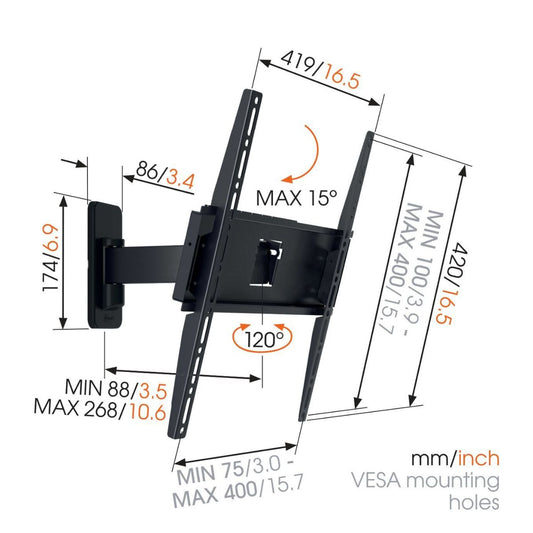Vogels MA 2030 Full motion stenski TV nosilec 19" do 43", 120°+15°, 15kg