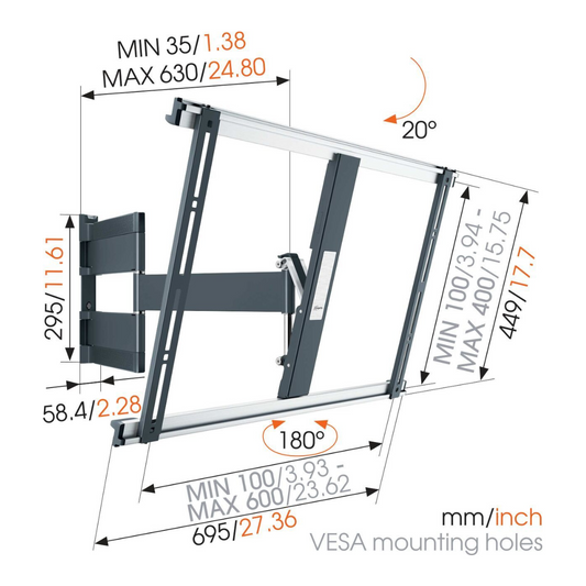 Vogels TVM 3463 Full-Motion OLED stenski nosilec, 32" do 65", 20°+180°, 25kg, črn