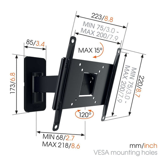 Vogels TVM-3223 Full-Motion nosilec za TV, 19" do 43", 20°+120°, 15kg, Črn