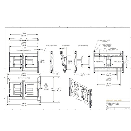 Vogels PFW 6851 Fullmotion nosilec za monitorje, 42" do 85", 90°+10°, 80kg