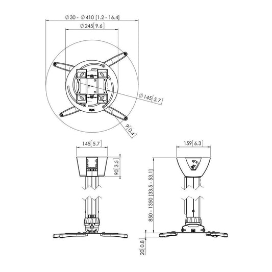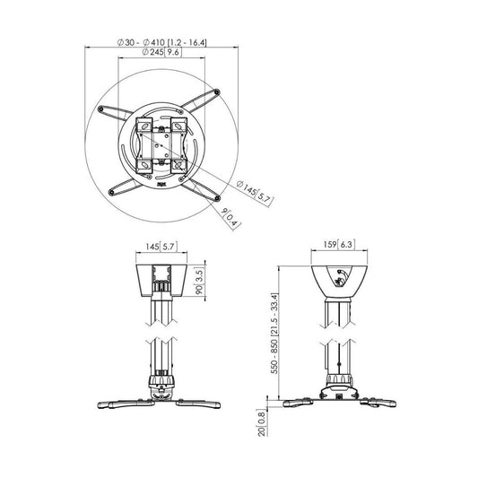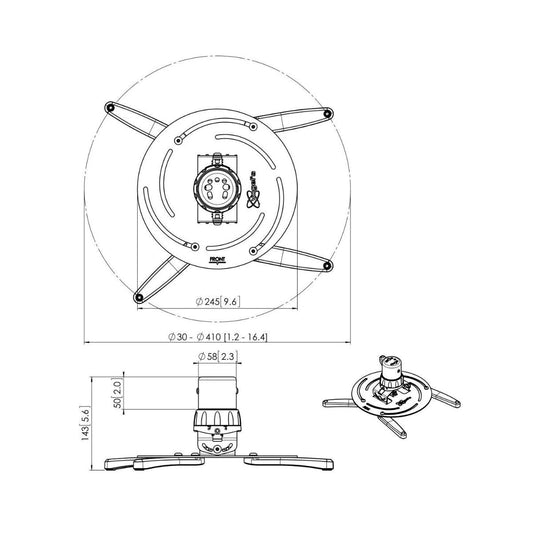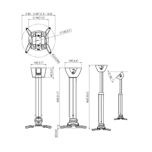 Vogels PPC 1585 Univerzalen stropni nosilec za projektor do 20kg, 360°+15°, bele ali srebrne barve